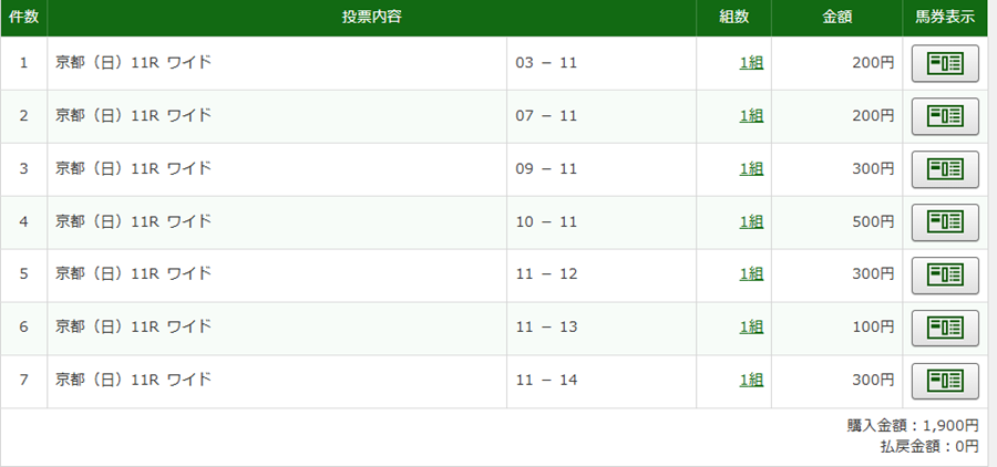 ◎オフトレイル、京都での成績が3.3.1と馬券内率100%のこの馬に賭けてみた。