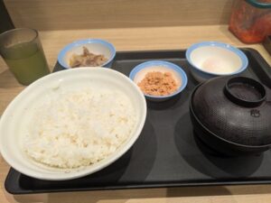 食事は最近の休日朝のルーティンになりつつある松屋で朝メニューを食べる事にした。